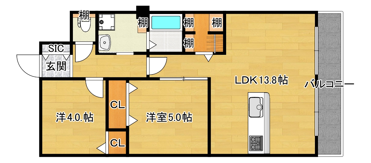 間取内容 LDK13.0畳   洋室5.0畳   洋室4.0畳