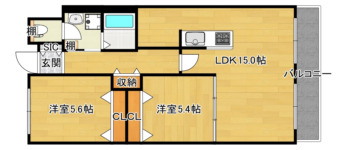 LDK15.0畳 洋室5.6畳 洋室5.4畳 |